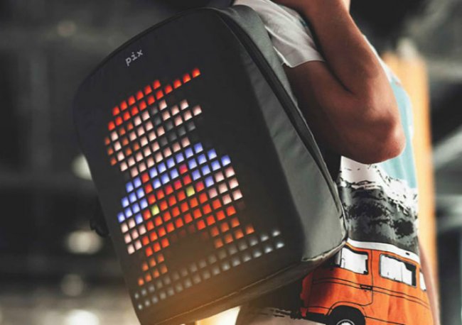 Рюкзак с пиксельным дисплеем, на который можно транслировать разные классные картинки — отличное приобретение для молодежи, которая хочет выделяться из толпы.