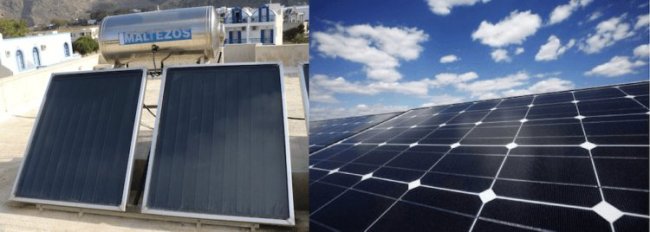 Солнечный коллектор — слева и солнечная батарея — справа