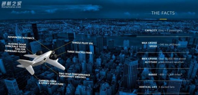 Конструкция новинки предусматривает пять мест для пассажиров и одно для летчика. В западной терминологии самолет относится к аппаратам Vertical Takeoff and Landing (VTOL). Он оснащен тремя движителями, два из которых в зависимости от своего положения могут работать как подъемные (при взлете/посадке) или как тянущие (горизонтальный полет). В центре фюзеляжа находится третий, «стационарный» движитель, который при горизонтальном полете прикрывает специальная задвижка. Концепт совмещает в себе решения, отработанные ранее на конвертопланах и уже упомянутом истребителе F-35B.
