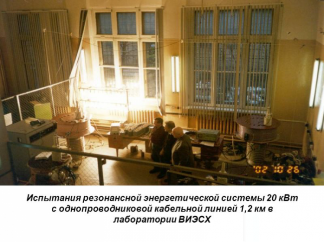 Несколько лет назад российские учёные совершили настоящую революцию в физике — разработали однопроводную систему передачи электроэнергии. Провод, о котором идёт речь, — диаметром сечения всего 8 микрон. Это в 10 раз тоньше человечесткого волоса! Учёные продемонстрировали, как по такой нити, практически не различаемой невооружённым глазом, передаётся ток мощностью 25 киловатт. Такой провод способен питать электричеством 2-3 коттеджа или 1 магазин средних размеров.