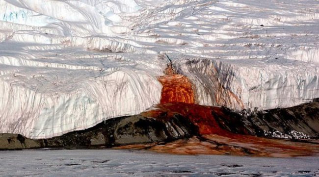Высота в пять этажей и вода кроваво-красного цвета делает водопад Blood Falls одним из самых удивительных чудес нашей планеты. Примерно два миллиона лет назад ледник запечатал микроорганизмы, остававшиеся в изоляции до нашего времени. Теперь, когда ледник начал таять, они ожили и придали странный цвет воде Blood Falls. Реинкарнация такой сложной экосистемы доказывает, что жизнь может существовать и на Марсе.