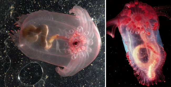 Розовый морской огурец действительно имеет очень необычную внешность, а его окраска варьируется от бледно-розовой до насыщенно красной. Покровы существа часто практически прозрачные и видны все внутренние органы.