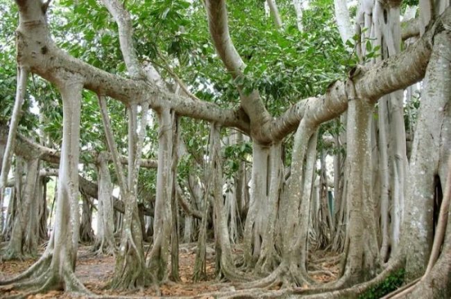 В Индийском ботаническом саду в городе Хаора можно увидеть лес площадью более 14 493 кв.метров. Но на самом деле это не лес, а дерево с самой большой в мире площадью кроны — Великий баньян (Фикус бенгальский) возрастом не менее 250 лет.