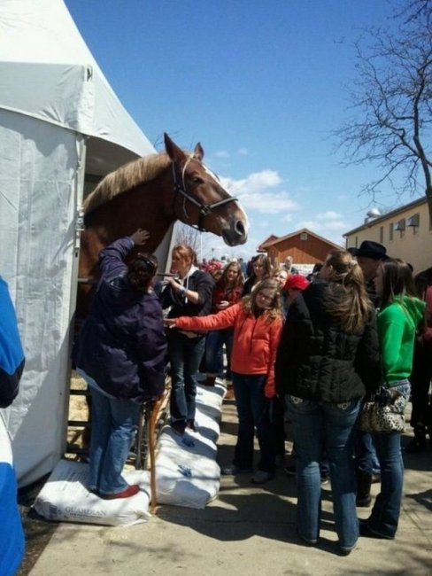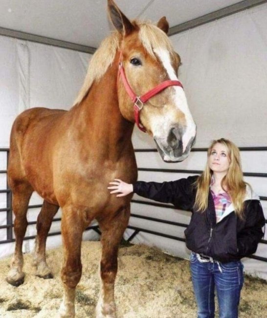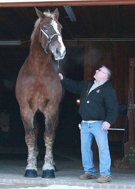 Удивительно то, что Big Jake принадлежит к породе брабансонов или бельгийских тяжеловозов, рост которых в среднем равен 165 см, сами они мощные, скорее коренастые. Но этот конь из Висконсина ломает все стереотипы.