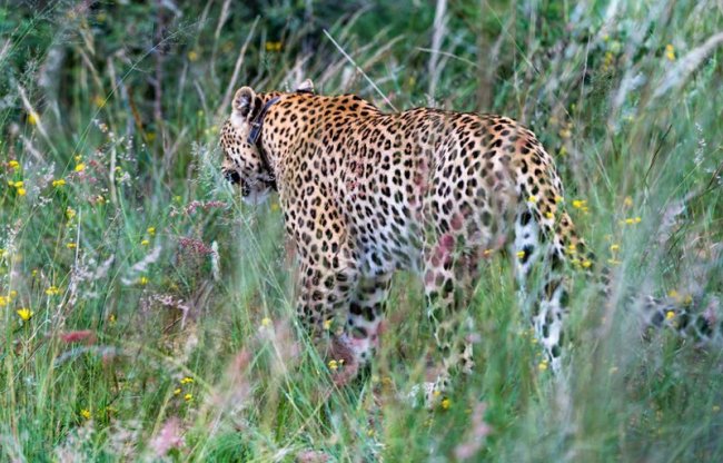 «Дикие» леопарды и гепарды носят ошейники, которые излучают радиоволны на несколько километров вокруг себя. Батарейки хватает на пару лет, потом леопарда усыпляют и меняют ему батарейку.