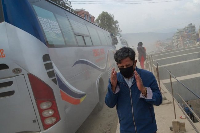Защитные маски от пыли давно стали привычным элементом одежды для жителей Катманду.