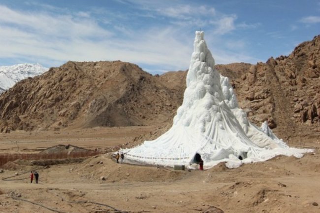 Строить технически сложные накопители в горной местности практически нереально. Проблему решил местный инженер, Сонам Ванчук. Он придумал собирать воду из горных ручьев зимой и замораживать ее в гигантские ледяные конусы.