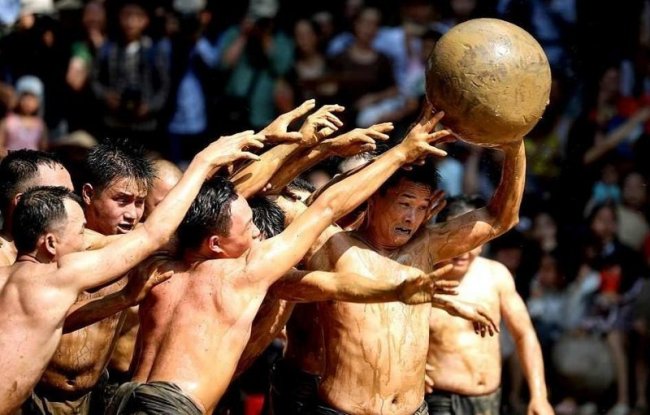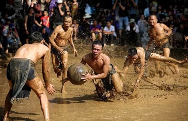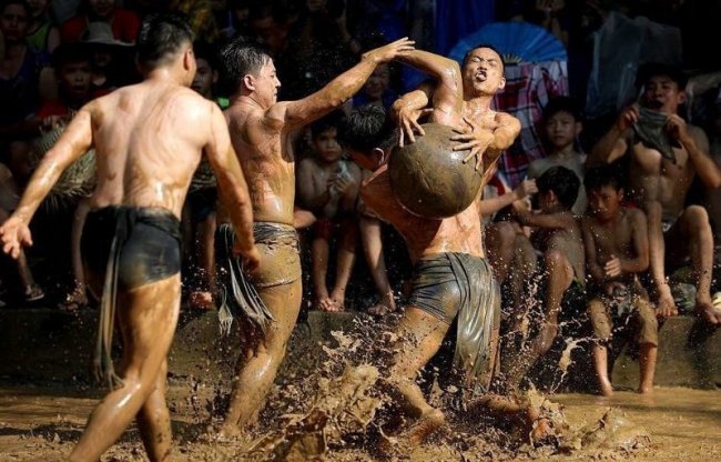 Раз в два года в деревне Ван на севере Вьетнама проходит праздник Кхан Ха, или битва в грязи. Согласно местной легенде, в незапамятные времена четверо братьев победили демонов, выиграв у них в своеобразной игре, проходившей в болотной жиже. И вот теперь их потомки на празднике воспроизводят эту игру, в которой две команды, состоящие исключительно из мужчин, пытаются отнять друг у друга 20-килограммовый мяч, бегая по колено в грязи.