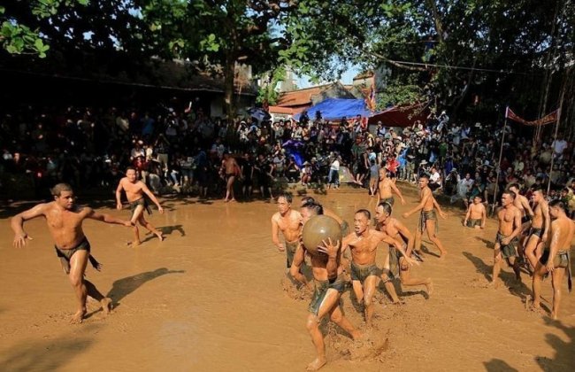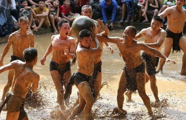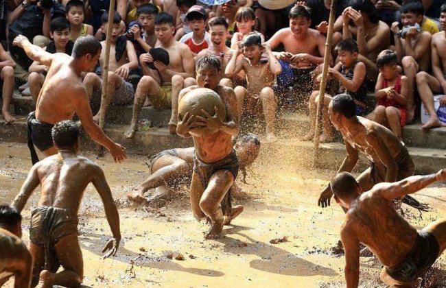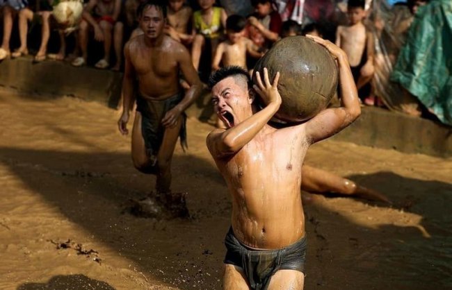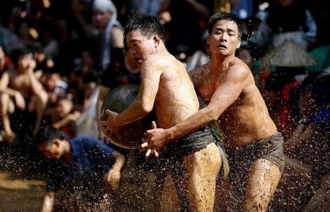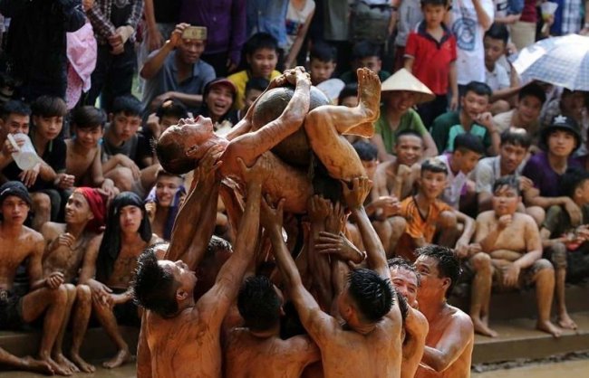 Для традиционной игры, которая проводится в деревне Ван на севере Вьетнама во время местного фестиваля Кхан Ха, чем больше грязи — тем лучше! В ходе этой игры две команды, состоящие из восьми молодых холостяков каждая, пытаются отнять друг у друга 20-килограммовый мяч, барахтаясь в грязи. По легенде, именно в такой игре их предки — братья Труонг Хонг, Труонг Хах, Труонг Лунг и Труонг Лей — победили демонов, сыграв с ними в эту игру среди местных болот. С тех пор каждые два года, с 12 до 14 числа четвертого лунного месяца, жители деревни проводят праздник в честь этой победы, своими силами воспроизводя легендарную игру ради развлечения деревенских жителей.
