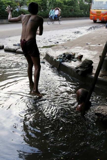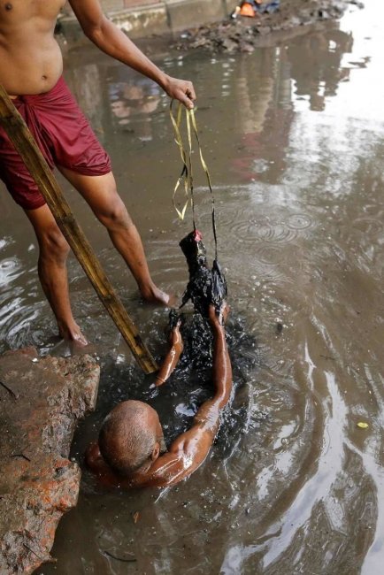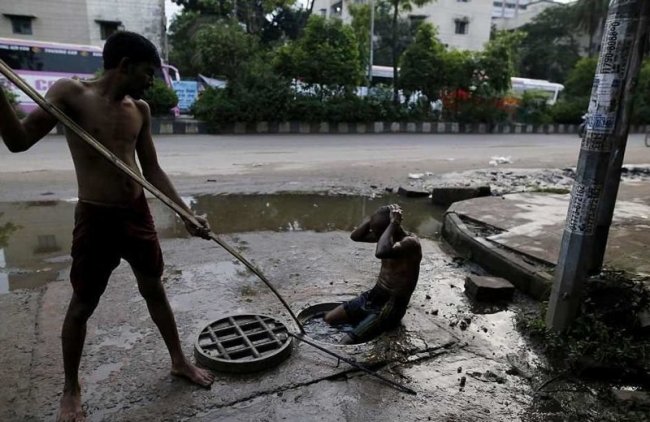 Ежегодно десятки канализационных чистильщиков гибнут в Бангладеше. Их заработная плата составляет максимум 10 долларов в день, при этом ныряют они в стоки без каких-либо защитных средств. Несмотря на высокую смертность и низкую оплату труда, бангладешцы вынуждены соглашаться на зловонную работу.