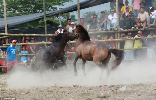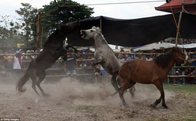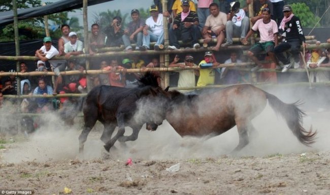 Мы знаем, что есть собачьи бои и петушиные. Некоторые даже умудряются стравливать рыбок в аквариуме, а вот на Филиппинах есть такое сомнительное развлечение, как лошадиные бои. Можно подумать, в нашем мире и так мало жестокости…