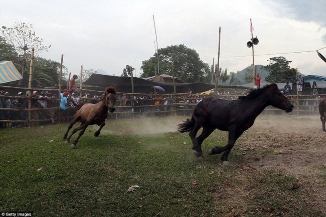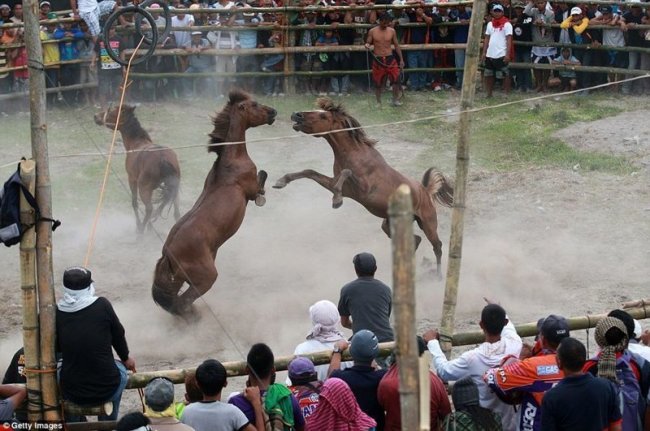 Состязания представляют собой бой двоих жеребцов на арене. Бой продолжает до тех пор, пока один из жеребцов не умрёт. Ничего себе, развлечение…