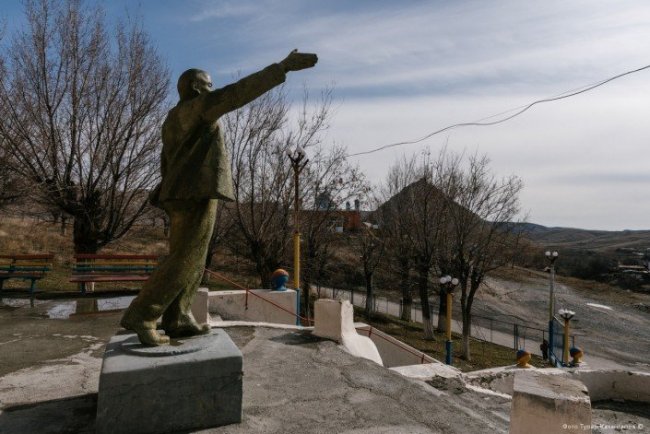 Объект этот просто огромных размеров, учитывая, что в Ачисае сегодня проживают всего 2176 человек. Но самое примечательное в нем — памятник Ленину, установленный у входа.