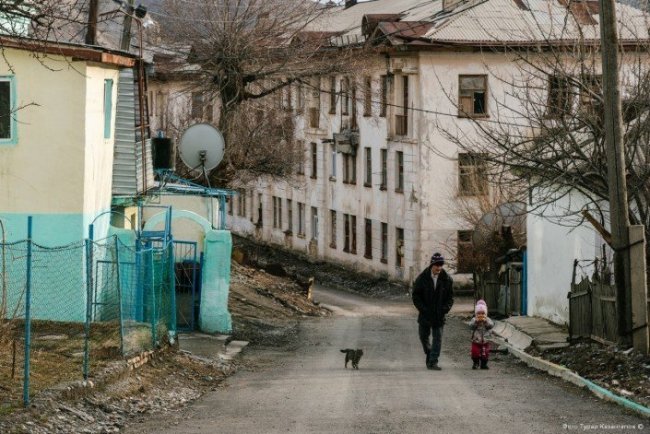 «Раньше здесь жили больше десяти тысяч человек. Повсюду были токарные цеха, цеха по обработке дерева, медицинские лаборатории. И вообще Ачисай строили с таким умыслом, чтобы он сам себя мог обеспечивать во время войны», — говорит мужчина.