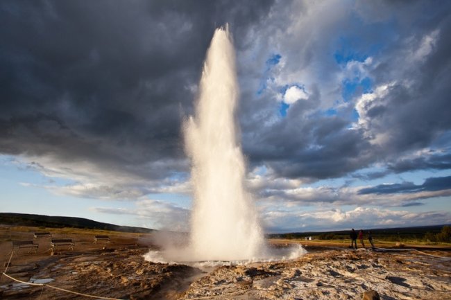 Помимо огромного количества льда, есть на острове и своя долина гейзеров — Хаукадалур. Она располагается в сотне километров к востоку от Рейкьявика, у подножья ледника Лаунгйёкудль. Именно здесь находится знаменитый Большой Гейзер, поразивший в свое время первопоселенцев Исландии. Это был первый природный горячий фонтан, который увидели европейцы. Впоследствии его именем стали называть все фонтанирующие горячие источники.