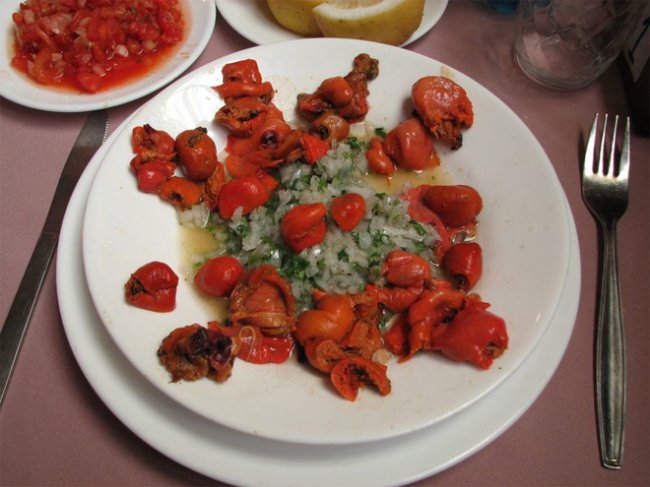 Грамотно приготовленная Pyura — ароматное и довольно вкусное блюдо. Настоящие гурманы едят его сырым. В чилийских ресторанах вам подадут его с рубленным луком, зеленью и лимоном — обычными для морепродуктов приправами.