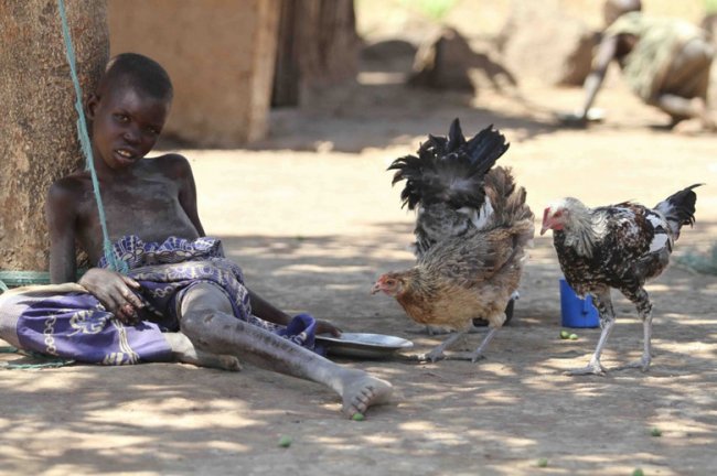 Журналисты, побывавшие в Судане и Уганде, фотографировали больных детей, которых родители привязывали веревками к дереву или к ножке стола, а тех, кого не привязывали, валялись в грязи и корчились во время приступов.