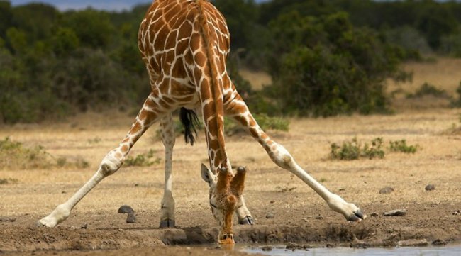 Да это, видимо, шутка какая-то — подумали, наверное, ученые, увидев жирафа первый раз. Создание и в самом деле уникальное — его огромное (10 килограммов) сердце даже не способно поднять кровь к голове! Жираф не должен наклоняться вообще, ведь подобный трюк может привести к обмороку. Лишь в 2016 году биологи раскрыли секрет этого удивительного животного: особое строение желудочков позволяет подниматься крови выше, а сосуды шеи не разрываются от прилива плазмы потому, что чрезвычайно эластичны. В обморок жираф тоже не падает, поскольку вся кровь скапливается в специальных венах, тянущихся вдоль шеи.
