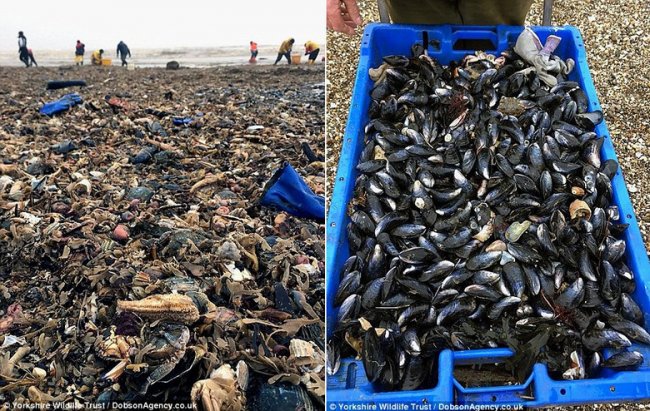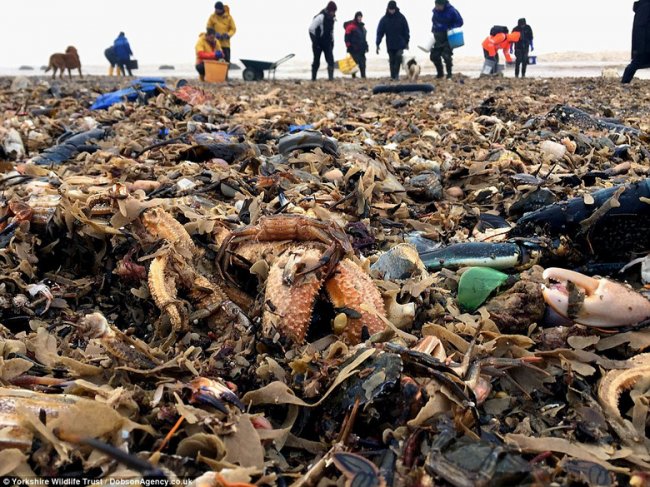 Морских обитателей выбросило на пляж возле деревушки Фрейсторп, жители которой до сих пор не могут отойти от того шокирующего зрелища, что они увидели после шторма.