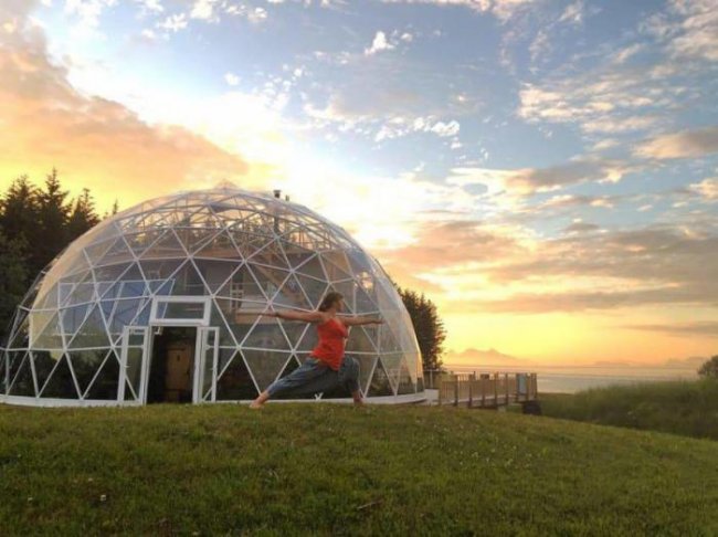 Ингрид отмечает, что работать у дома ей очень нравится. В этой части земного шара часто сильные ветры и дожди. Но как только заходишь под купол, все это остается снаружи. Хотя человек все еще остается на улице, по-прежнему на свежем воздухе, но здесь сухо и тепло. Это настоящее удовольствие. А наблюдать поток дождя над головой просто удивительно.