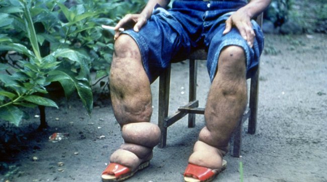 Так называемый «слоновий» паразит. После попадания в человеческий организм червь растет, а через год становится таким большим, что просто блокирует лимфатическую систему нашего тела. Единственный выход — ампутация.