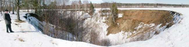 Огромный котлован, в котором без труда уместился бы девятиэтажный дом, сейчас уже весь зарос кустарником и деревьями. Один из местных старожилов поведал, что земля в этом месте тогда вдруг с шумом и треском поднялась, а потом рухнула вниз, образовав колоссальную яму. Какое-то время в ней стояла вода. Неосторожный человек из местных однажды утонул в этом котловане.