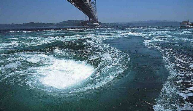Узкий пролив Наруто считается опасным местом даже для опытных моряков. Во время прилива, скорость воды достигает 34 км/ч, образуя воронки диаметром в целых 30 метров.