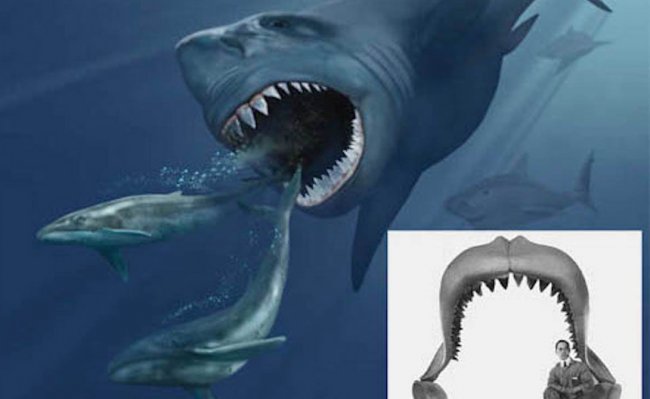 Ладно, эта акула существовала 2,6 миллиона лет назад — но не включить самого большого представителя вида в нашу подборку мы не могли. Мегалодон достигал 30 метров в длину: на этом снимке (ученые создали его благодаря найденным останкам) чудовище охотится сразу за двумя китами. В челюстях мегалодона могли свободно поместиться несколько человек.