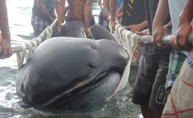 На всей планете сохранилось лишь около полусотни этих странных акул. Экземпляр со снимка был пойман на Филиппинах: рыбаки сами принесли добычу к океанологам. Большеротая акула питается только планктоном и передвигается со скоростью в 2 км/ч — неудивительно, что их осталось так мало.