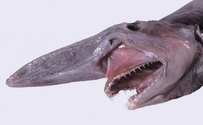 Самая уродливая акула в списке. Три метра в длину, острые и загнутые, как рыболовные крючки, зубы — в кого, интересно, планировало эволюционировать это создание?