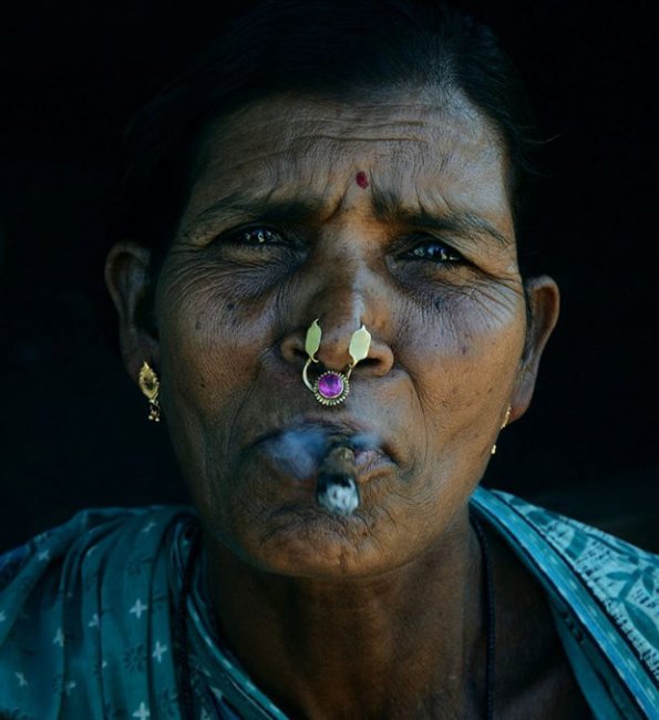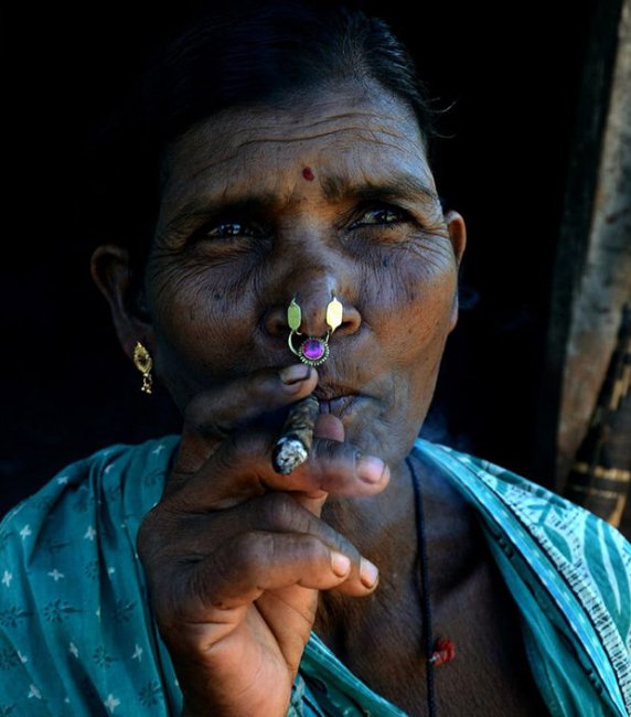 В горном районе Восточной Индии живет самобытное племя, в котором мужчины и женщины курят сигары, носят в носу серьги и покрывают кожу татуировками.