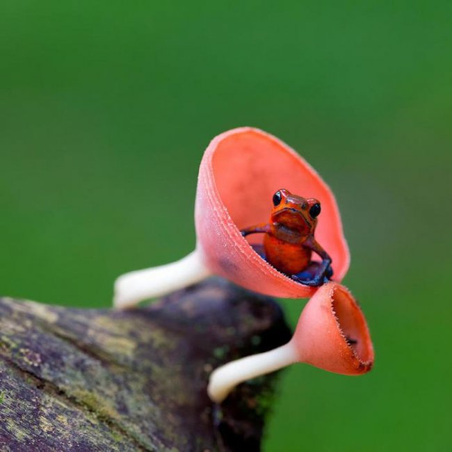 Эти лягушки при опасности могут прыгать на расстояние, превышающее 60 длин их тела. Конечно, в сумме получается всего около одного метра, однако если пересчитать это относительно человека, то вам пришлось бы прыгнуть на высоту 38-этажного здания, чтобы добиться подобного результата. Таким образом, с человеческой точки зрения, один метр – это далеко не самый впечатляющий результат, но если смотреть на эту высоту с точки зрения лягушки, то она просто поражает.