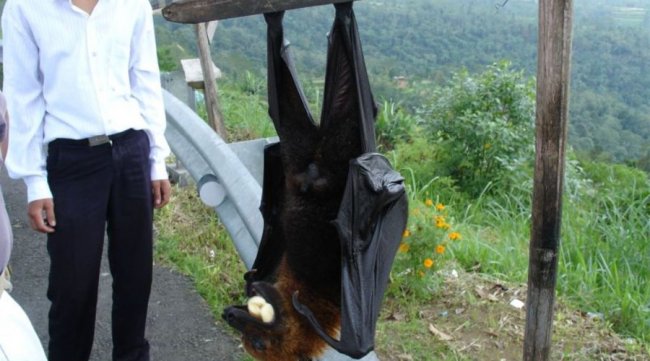 Самый большой представитель отряда рукокрылых. Размах крыльев достигает полутора метров, вес — двух килограммов. Эти странные создания, действительно похожие на лису с крыльями, перемещаются огромными стаями до ста особей: просто ужас, летящий на крыльях ночи.