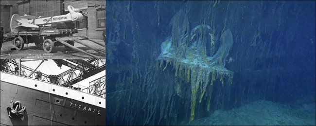 Фото основного якоря по левому борту Титаника. Остается загадкой, как он в процессе удара об дно не слетел вниз.