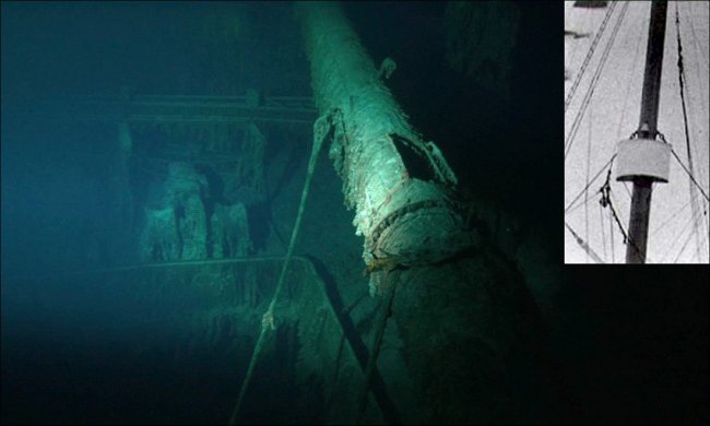 Еще лет 10-20 назад на мачте Титаника можно было разглядеть остатки так называемого «вороньего гнезда», где располагались впередсмотрящие, но сейчас они отвалились. Единственным напоминанием о «вороньем гнезде» является отверстие в мачте, через которое моряки-впередсмотрящие могли попасть на винтовую лестницу. Хвостик, находящийся за отверстием был когда-то