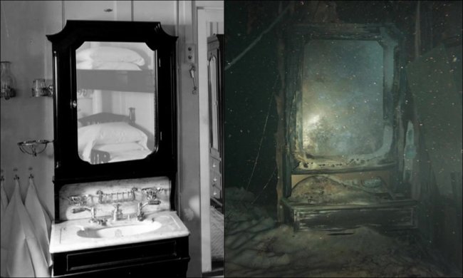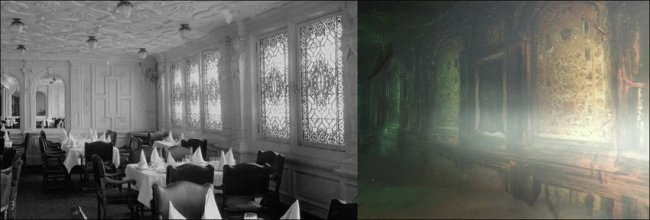 В 1912 году каюты 1-го класса имели просто восхитительный интерьер, а сейчас просто засыпаны обломками и мусором. В отдельных каютах