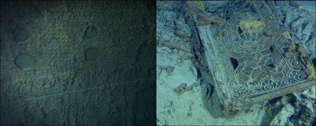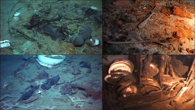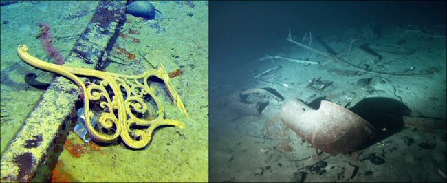На дне океана лежат сотни предметов, среди них детали судна и личные вещи пассажиров.