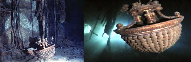 Если сопоставить приведенную на фото модель носовой части и те остатки, что сейчас лежат на дне, сложно назвать их идентичными, ведь передняя часть корабля в процессе падения сильно погрузилась в ил. Такое зрелище сильно разочаровало первых исследователей, поскольку расположение обломков не позволяло осуществить осмотр места, которым судно ударилось об ледяную глыбу, без использования спецтехники. Рваная дыра, наличествующая в корпусе, хорошо заметная на макете – результат удара об дно.