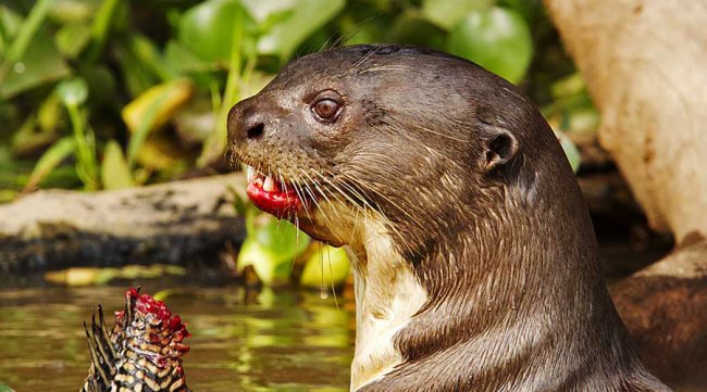 Милый зверек в тридцать килограмм весом не очень-то боязлив, в отличие от своих европейских родственников. Не стоит подходить за совместным селфи к гигантской выдре, можно и без пальцев остаться. Местные жители прозвали выдр «речными волками»: сбиваясь в настоящие стаи, они смело нападают на более крупных хищников.