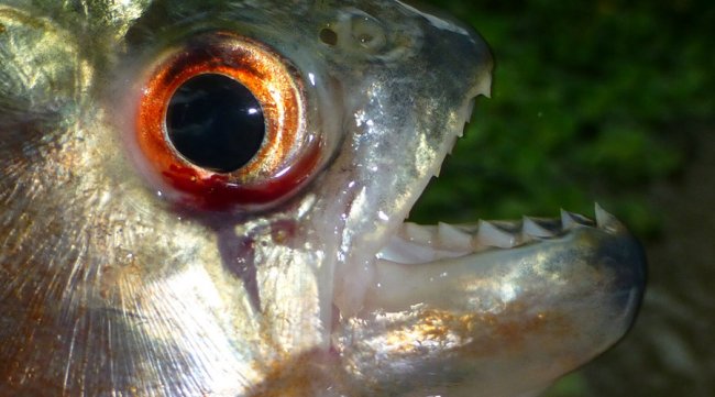 Можно сказать, что паку двоюродный брат пираньям. Вот только зубы у них квадратные и напоминают человечьи. Зачем? Да чтобы отрывать от жертвы куски мяса побольше.