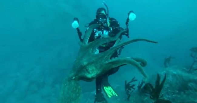 Дайвер помогал ликвидировать последствия подводной аварии на побережье Новой Зеландии в 1981 году, когда осьминог обвил щупальца вокруг его тела и начал сдавливать человека. Дайвер смог подать сигнал людям на поверхности, и они его вытащили.