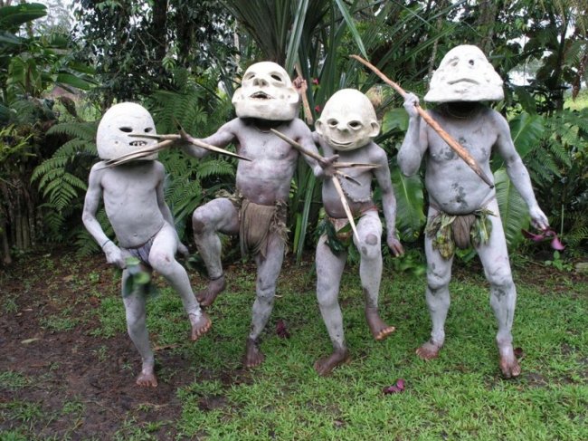 В Папуа — Новой Гвинеи обитают более 2000 племен, среди них — Асаро мудмен — «люди с реки Асаро, покрытые грязью»