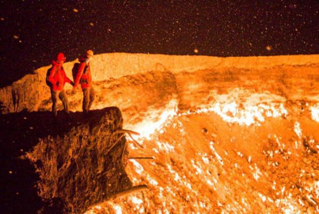 Возможно, вы уже слышали об этом месте, но тем не менее мы не можем о нем не упомянуть. Примерно четыре десятилетия назад во время поиска природного газа геологи наткнулись на скважину значительных размеров, излучающую метан и другие токсичные газы. Они начали проводить разведывательные работы и бурить скважину, пытаясь лучше ее изучить. В результате геологи наткнулись на подземную пустоту, что привело к обвалу земли в этом месте. Так образовался кратер Дарваза. Однако у геологов появились опасения, что газ может навредить людям, живущим поблизости, поэтому они решили поджечь его, надеясь, что он выгорит за несколько дней. Однако на этот раз ученые ошиблись. Прошло сорок лет, а кратер все еще горит, и это делает его единственным в своем роде объектом.