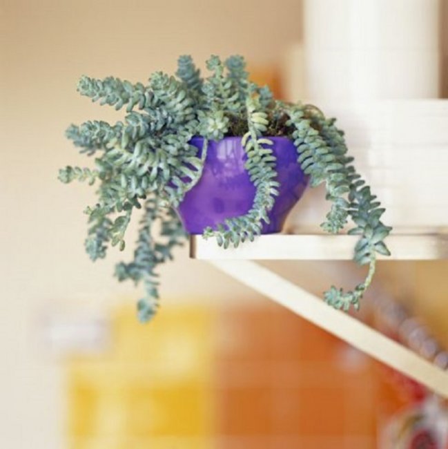 Очиток Моргана или ослиный хвост с мясистыми, свисающими стеблями служит резервуаром для воды в засушливую погоду.