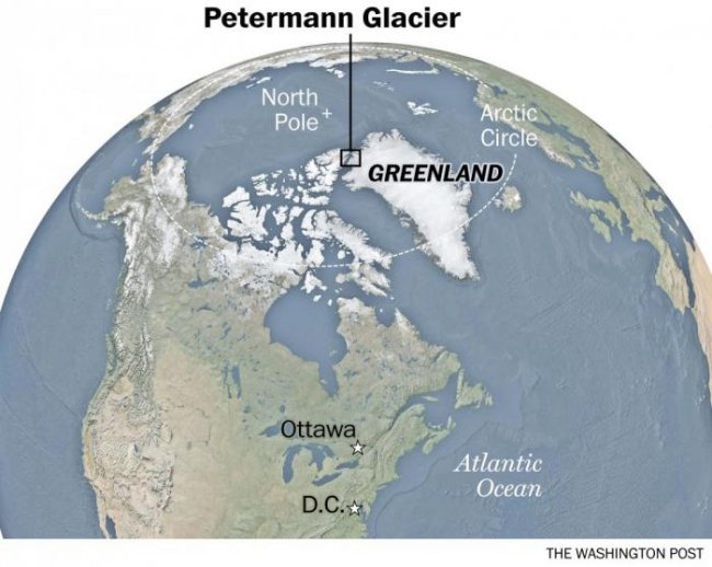 Согласно последним сообщениям ученых, ледяной покров Арктики в результате влияния природных процессов и антропогенного изменения климата буквально «трещит по швам», однако практически во всех случаях это происходит по краям ледяных полок, которые располагаются над океаном. Однако в леднике Петермана, который начал серьезно фрагментироваться с 2010 года, появилась трещина, проходящая через его середину.