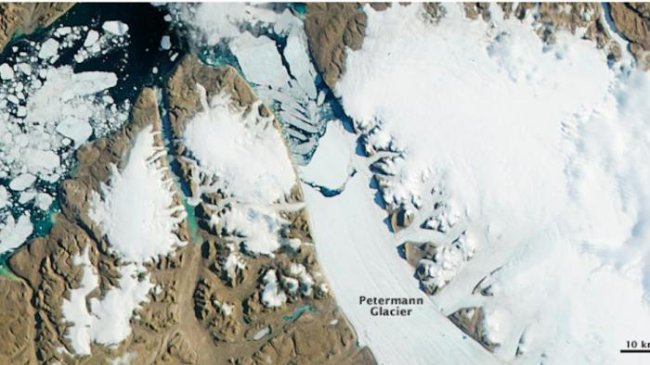 В леднике Петермана в Гренландии появилась гигантская трещина, которую впервые удалось сфотографировать ученым НАСА. Учитывая влияние глобального потепления, эта новость не должна вызывать удивление, однако, в отличие от большинства ледниковых трещин, эта находится в очень странном месте.