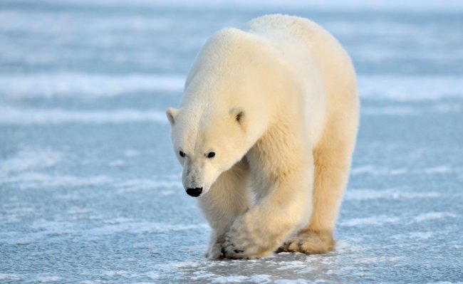 В отличие от большинства животных, белый полярный медведь человека не боится. Собственно, он вообще ничего не боится: у белого медведя нет природного врага. Эти ребята неторопливо бродят по своим ледяным владениям и поедают все, что кажется им питательным, включая других полярных медведей.