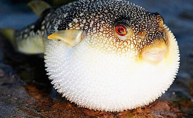 Рыба считается одним из самых ядовитых созданий в мире. Однако, рисковые японцы почитают фугу большим деликатесом. Яд фугу парализует диафрагму и человек просто умирает от удушья — одна ошибка повара может стоить вам жизни.