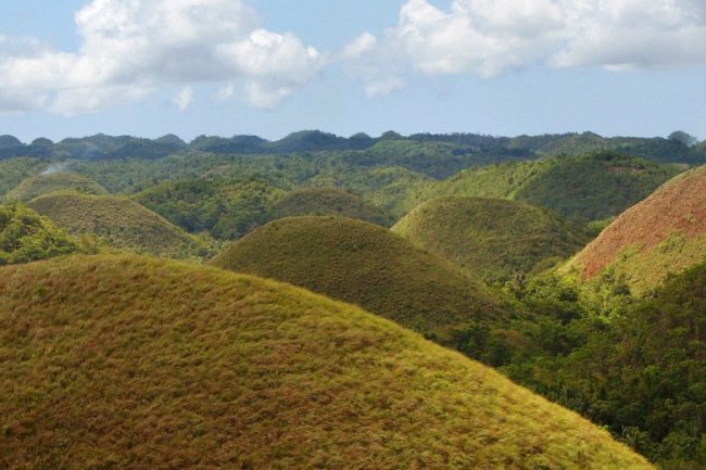 Среди природных достопримечательностей Филиппин первое место занимают Шоколадные холмы, расположенные на острове Бохоль. На плоскогорье острова на площади 50 кв. км раскинулись 1268 возвышенностей, покрытых травянистой растительностью.