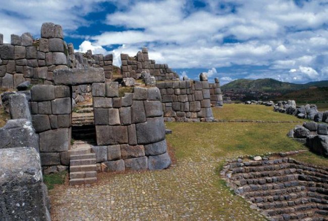 Саксайуаман — окруженный стеной древний храмовый и военный комплекс, расположенный высоко над городом Куско в Перу, он являлся исторической столицей Империи инков. Три параллельные стены были построены на разных уровнях из известняковых глыб огромных размеров. Считается, что извилистые стены представляют собой зубы раскрытой пасти пумы. Самая большая стена — 8,5 метров высотой и весом приблизительно 140 тонн. Стена построена настолько искусно, что даже единственный тоненький листок бумаги не протиснется между глыбами. Куско и Саксайуаман вместе были добавлены к списку всемирного наследия ЮНЕСКО в 1983 году.